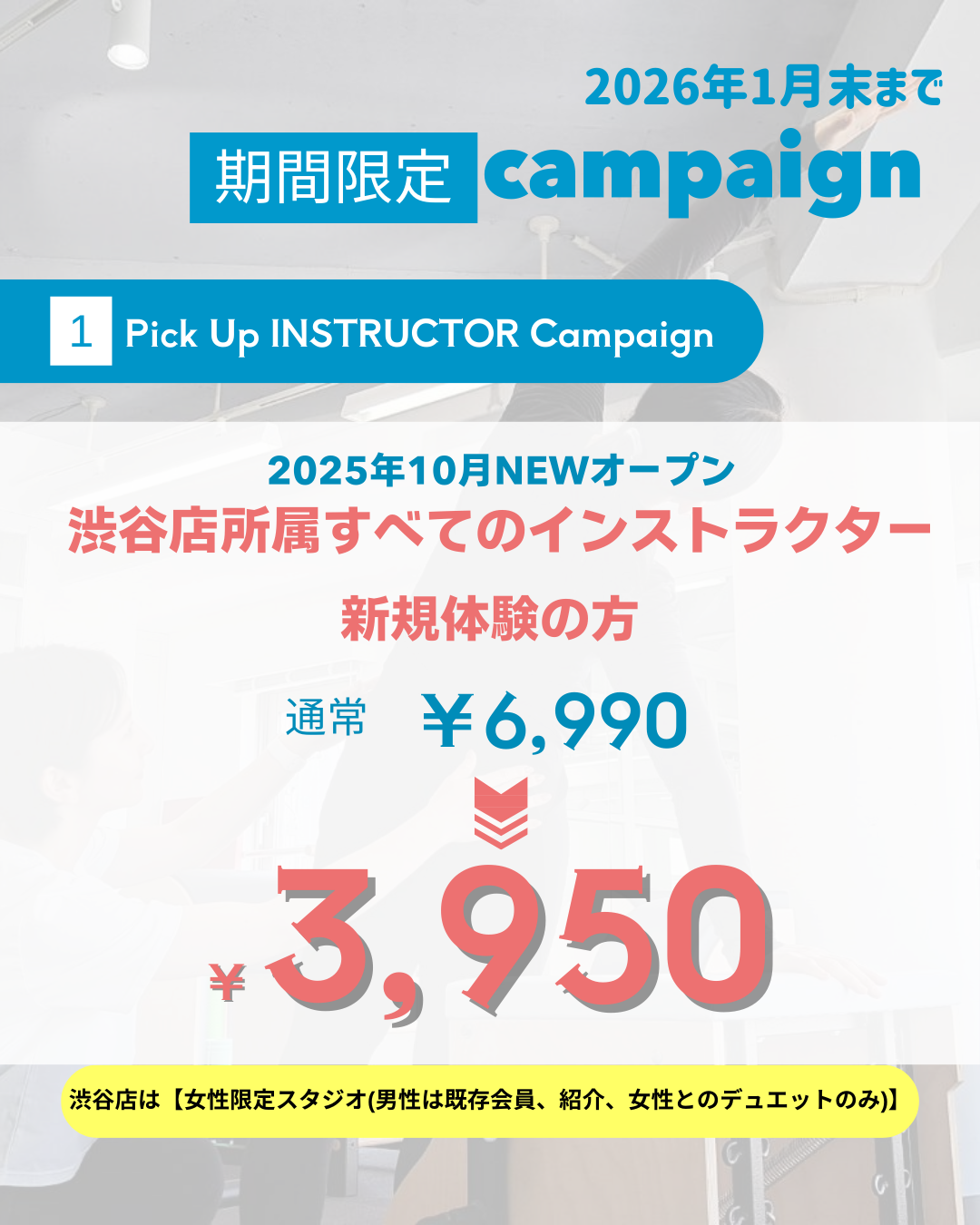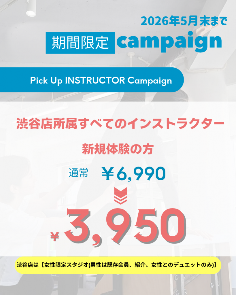 渋谷店所属すべてのインストラクターのセッションがキャンペーン価格にて受けられます!