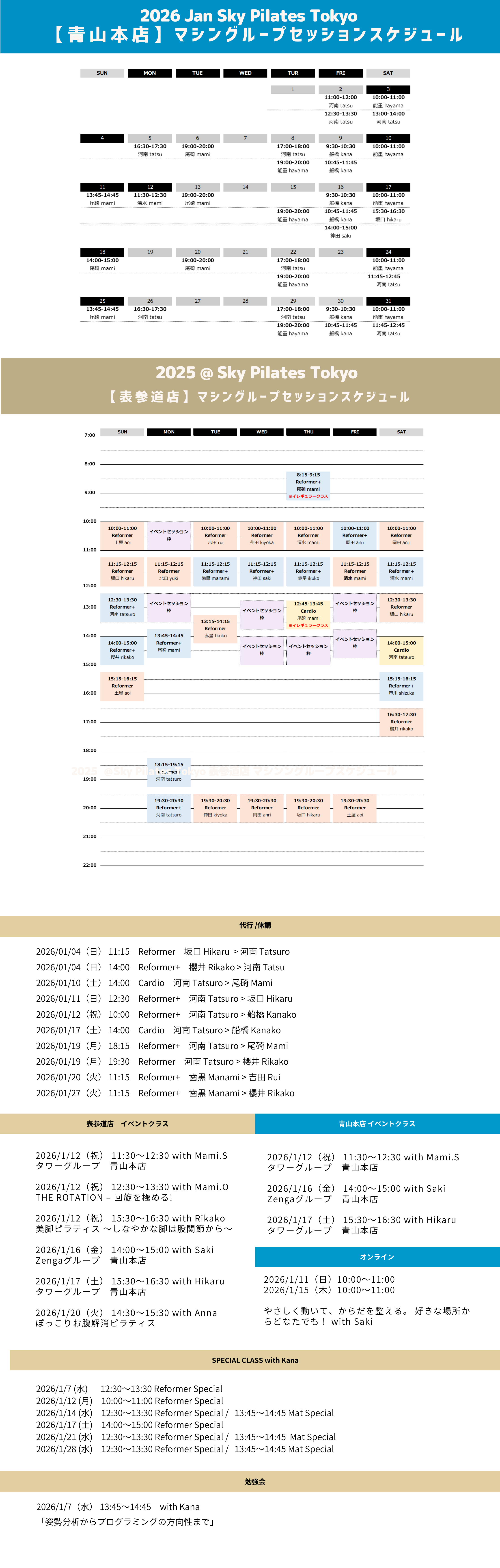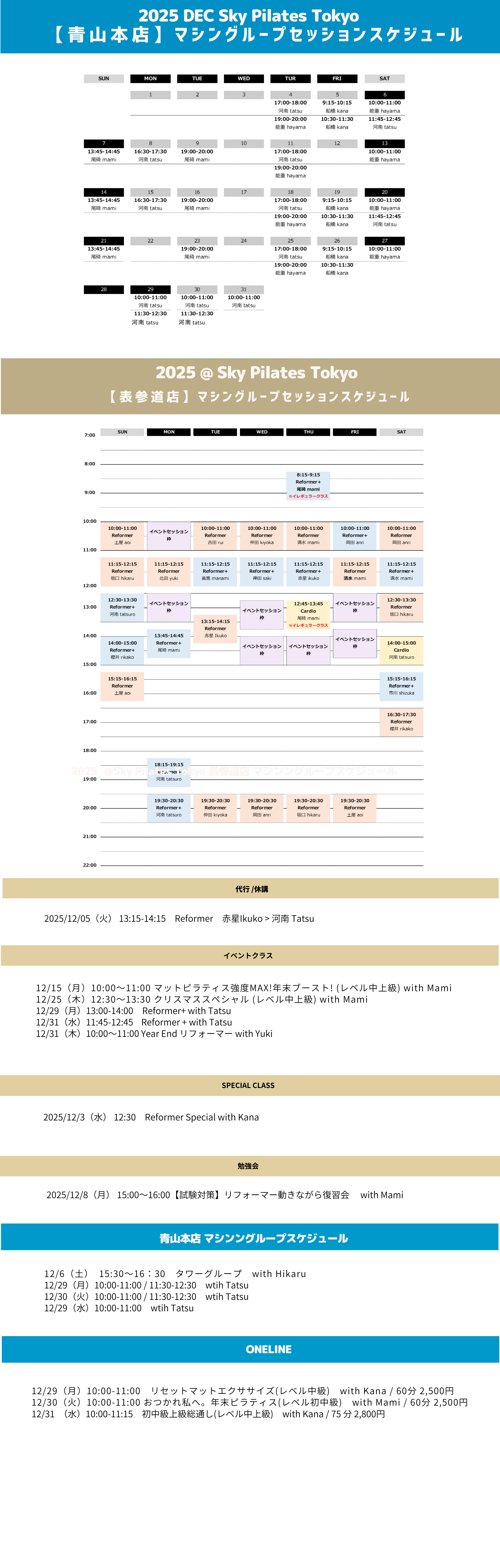 - インストラクターによっては上記料金と異なることもあります。詳細はオンライン予約受付フォームでご確認ください。